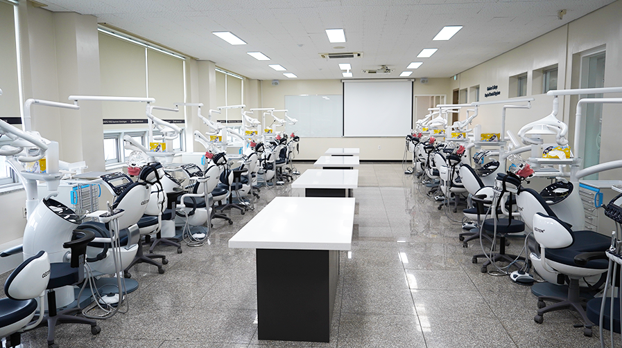 시설도 최신식으로 무장했어요. 특히 실습실은 그 어느 학교보다 최첨단 기술을 보유한 기기들을 세팅해놓았음을 확인할 수 있습니다. 소득실도 상당히 깔끔하게 구성되어 있으며, 구강영상학 실습실 또한 학습하고 실습하기에 충분해요.