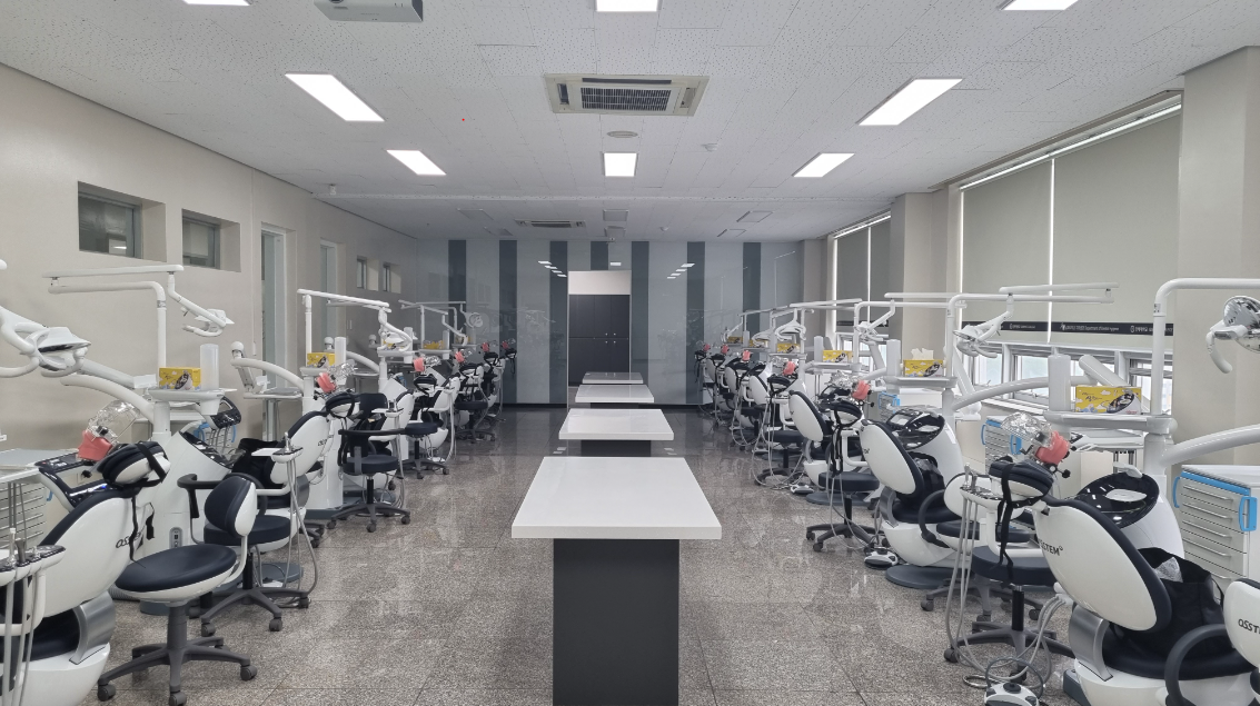 시설도 최신식으로 무장했어요. 특히 실습실은 그 어느 학교보다 최첨단 기술을 보유한 기기들을 세팅해놓았음을 확인할 수 있습니다. 소득실도 상당히 깔끔하게 구성되어 있으며, 구강영상학 실습실 또한 학습하고 실습하기에 충분해요.