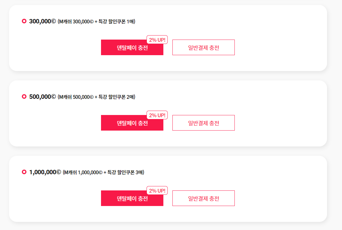 엠M캐쉬를 이벤트로 참여해 받을수도 있지만, 덴탈페이를 이용해 충전하는 경우, 결재 금액에 2%를 추가 지급 받을 수 있고, 특강 할인쿠폰도 왕창 받을 수 있어서 너무 좋습니다. 이처럼 메듀플은 다양한 방법을 이용하면 수강생들이 교육비 부담을 덜 수 있도록 다양한 방법을 고민하고 있습니다.